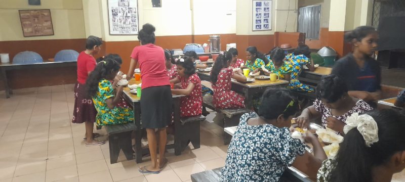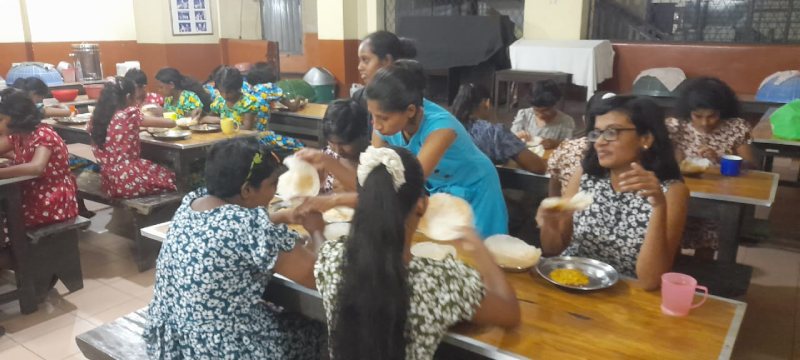 The students and RC70 members and their families socialise with the children in numerous ways during the event which encourages the students in many ways.The blind school student population is 136 and the dinner is provided based on their choice for the students and the staff. On this occasion they opted for hoppers for dinner and egg hoppers and hoppers were provided with accompanying dishes such as chicken followed by a Dessert.